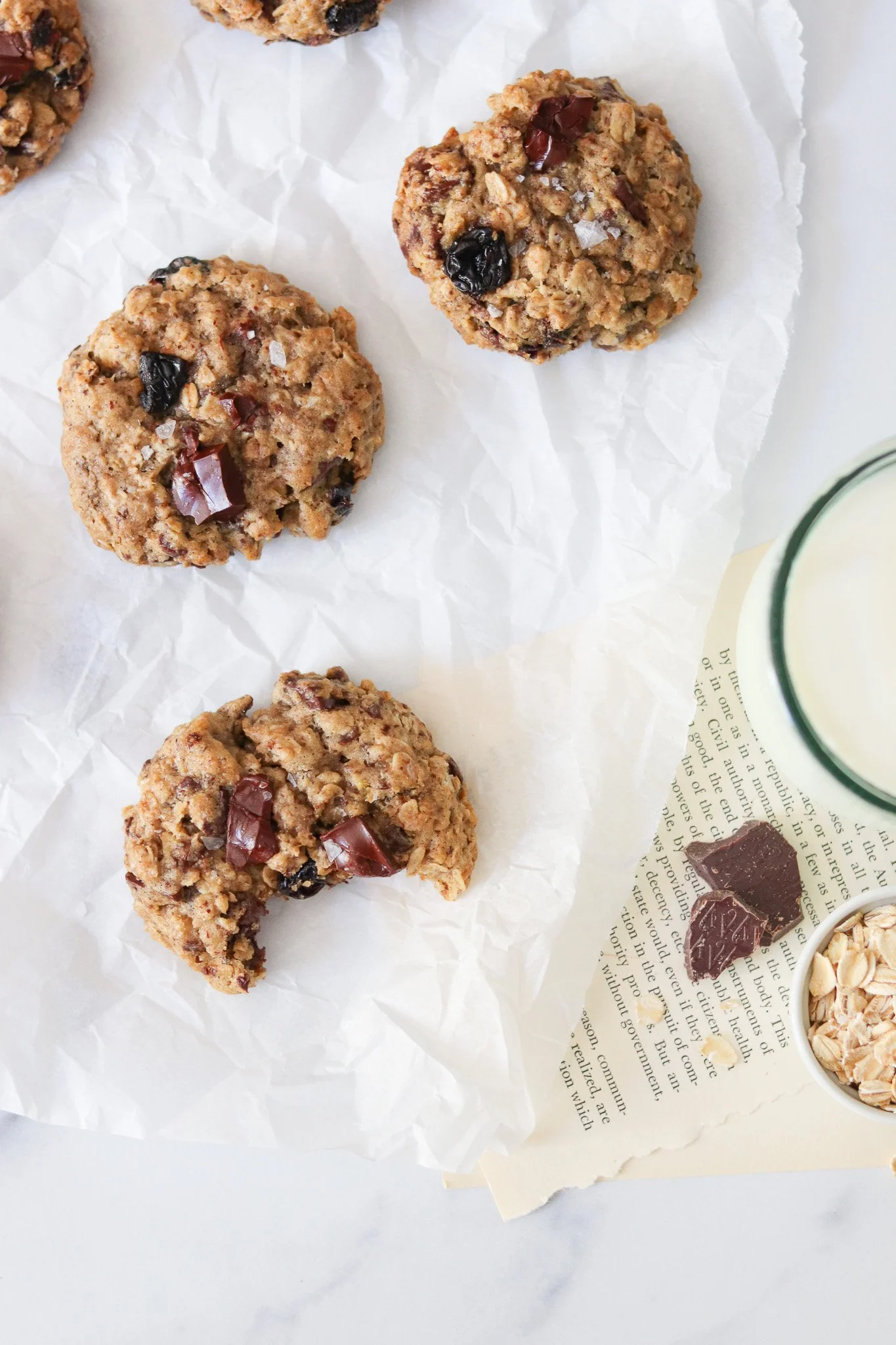 Add in the oats, bourbon-soaked cherries, and chopped chocolate and stir until just combined. Let dough sit for 5 minutes for the flour to hydrate.