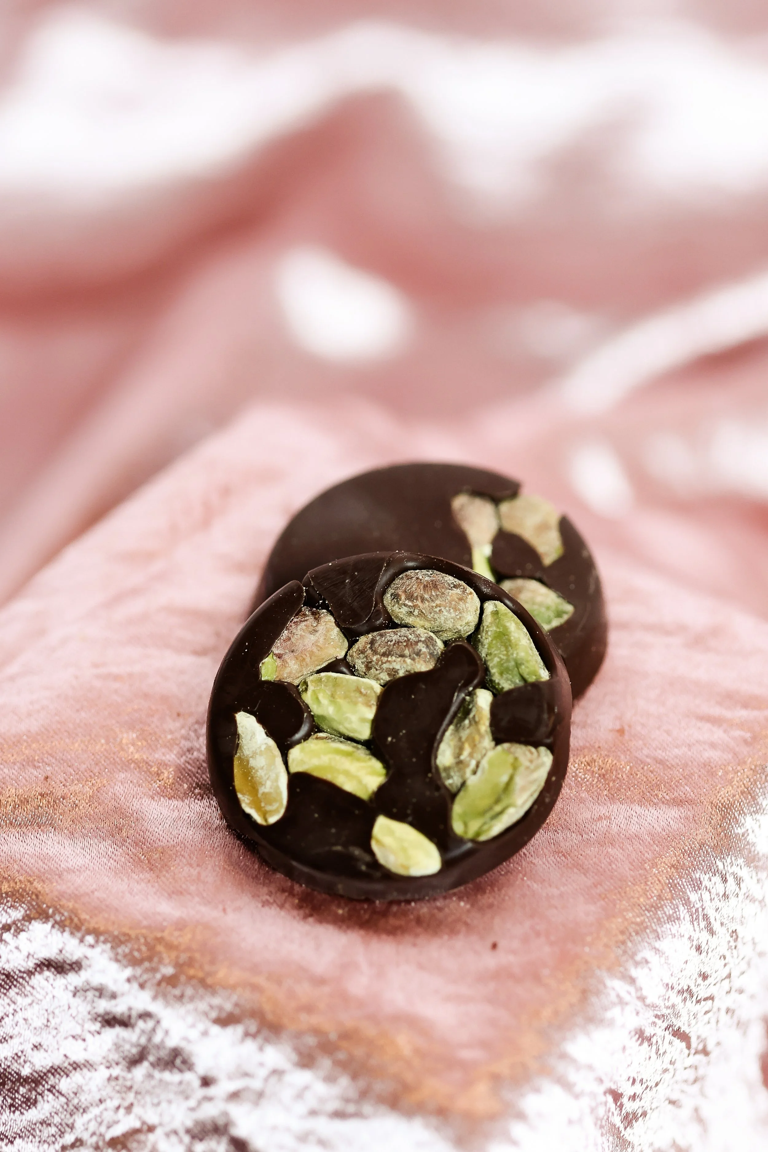 pistachios, 70% dark chocolate shell
