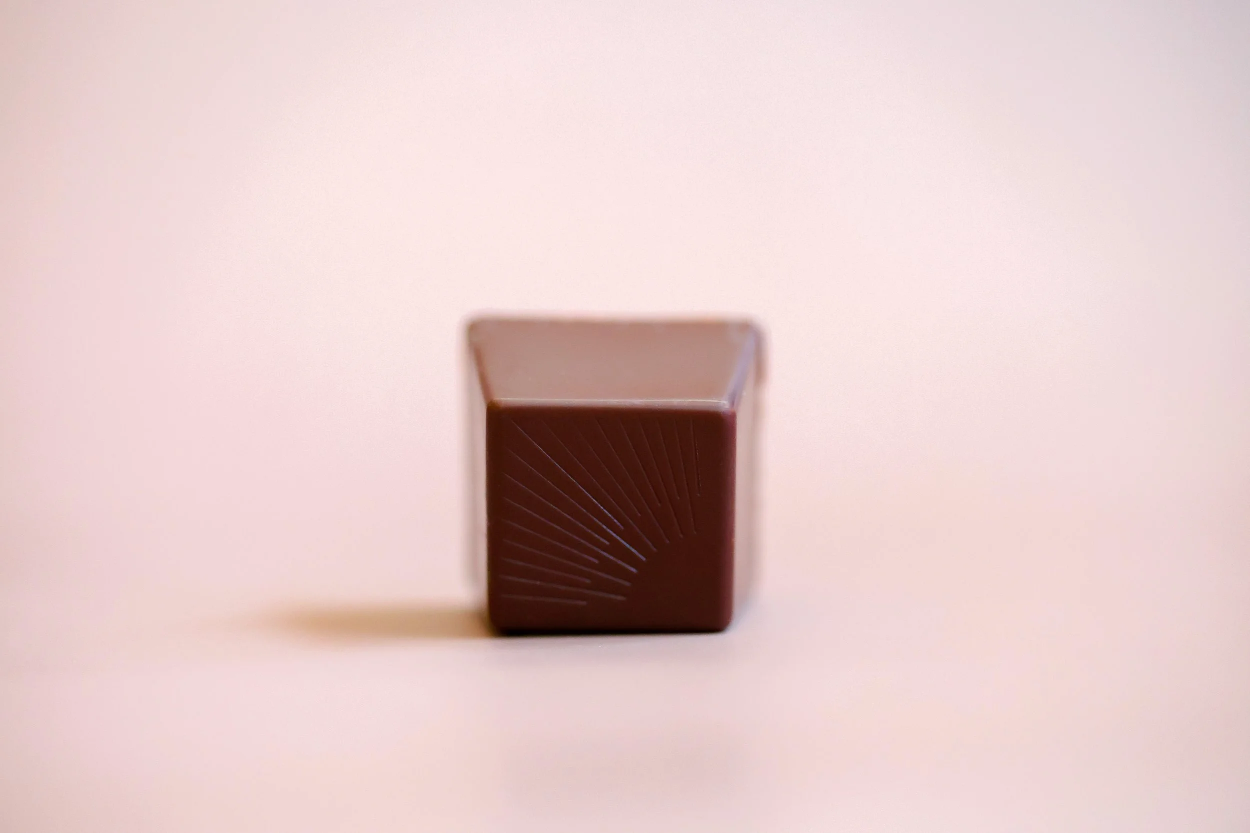 70% dark chocolate, local heavy cream, European style butter, enrobed in 70% dark chocolate, marked with parallel diagonal lines