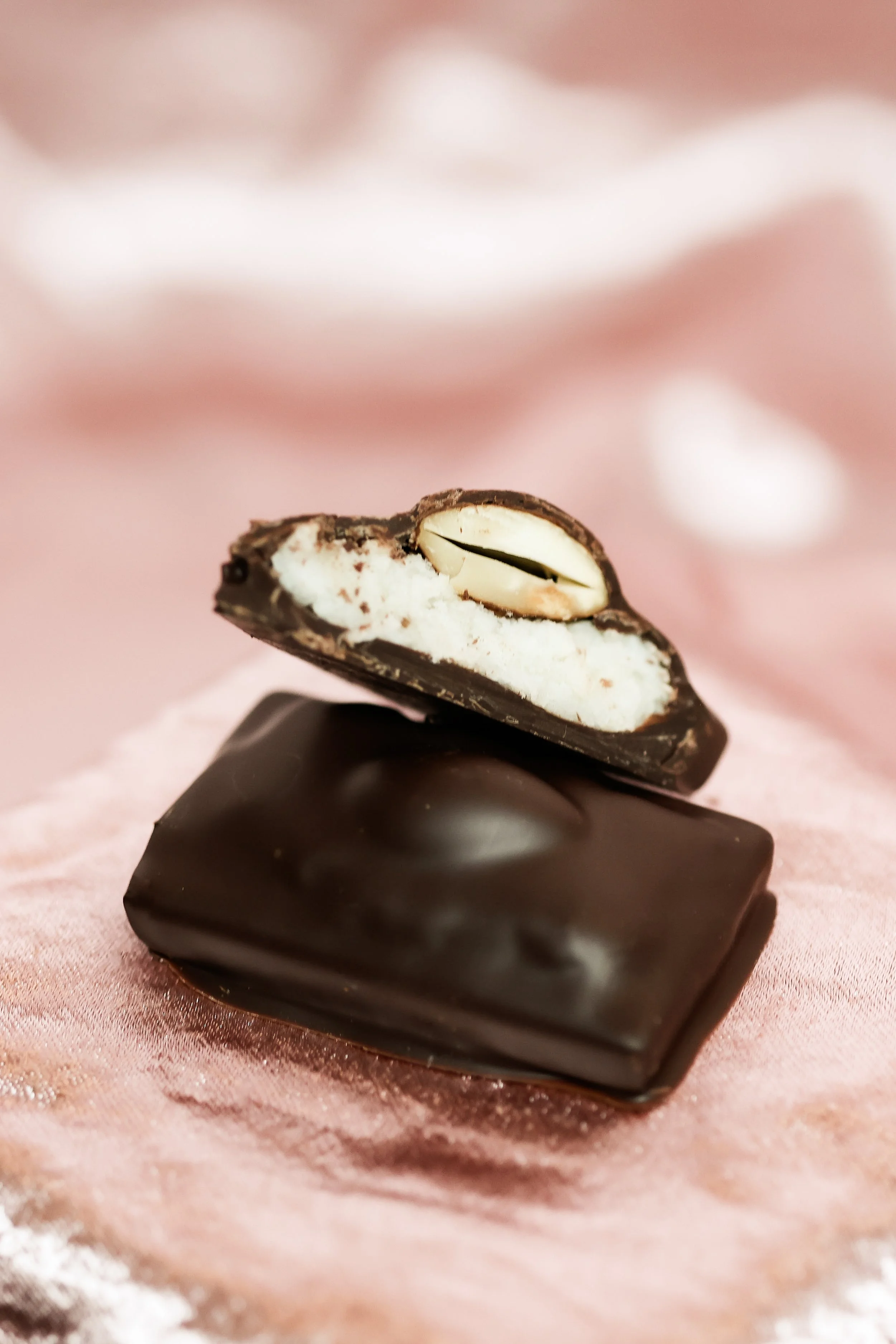 coconut, coconut milk, salted almond, 70% dark chocolate shell