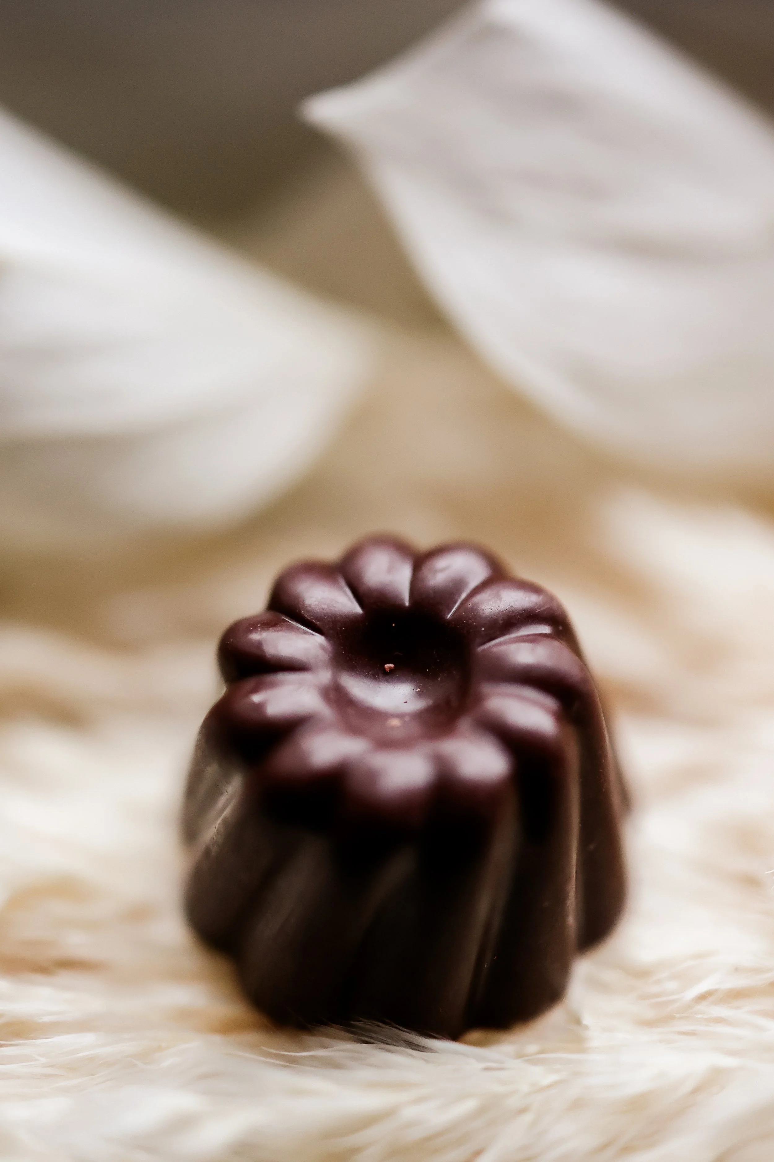 pull-apart caramel, organic + fair-trade Madagascar vanilla beans, enrobed in 70% dark chocolate, garnished with Bulls Bay flake salt